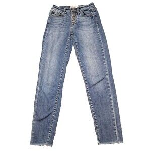 Kancan Jeans Womens Sz 25 Skinny Ankle Denim Blue Stretch Distressed Whiskers
