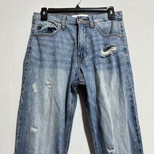 Kancan Karla Straight Jeans Women's 3/25 Blue Denim Distressed High Rise Zip Fly.