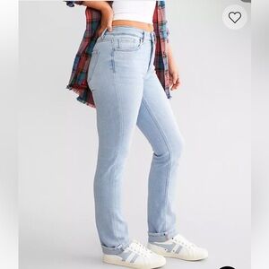 The perfect mid-rise that sits at the hip. Featuring a gap proof waistband that contours and defines your curves with a straight leg silhouette. Live in the jeans you love.