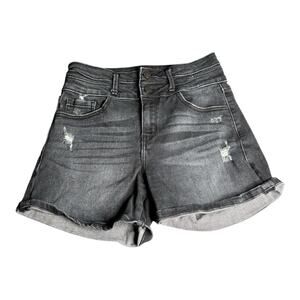 Kancan Kurvy Ultra High Waist Black Two Button Denim Shorts Size 27