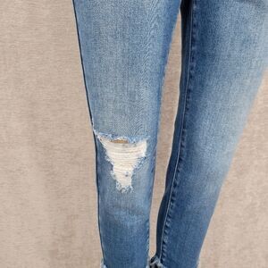 Kancan Leslie Mid Rise Ankle Skinny Jeans Distressed Frayed Hem