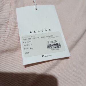 Kancan Light Pink Denim Shorts-Size XL-Rope Belt Detail-Cuffed-High Rise-NEW