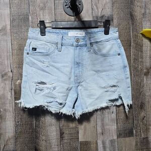 Kancan Light Wash Distressed Raw Hem Jean Shorts