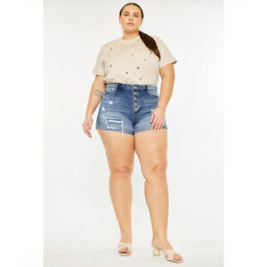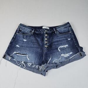 Kancan Lyric Denim Shorts High Rise Distressed Button Fly Cotton Jean Size 2XL
