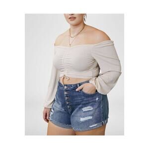 Kancan Lyric Ultra High Rise Distressed Button Fly Denim Shorts Women's 3XL