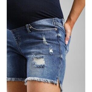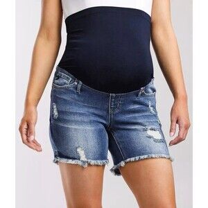 Kancan Maternity Stretch Shorts Blue Denim Distressed Full Belly Panel Sz 7/27