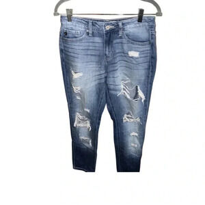 Kancan Medium Wash Cropped Distressed Jeans Size 5/26