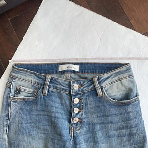 Kancan Medium/light Wash Jeans With Distressed Details, exposed button fly. relaxed fit. Size 25. Great condition! See pictures for measurements