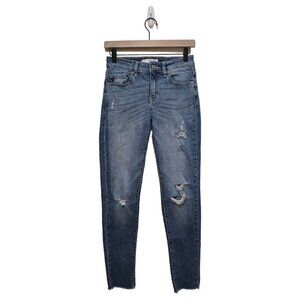 Kancan Mid-Rise Distressed Raw Hem Ankle Skinny Jeans Sz 27