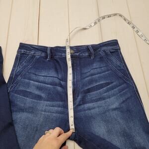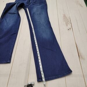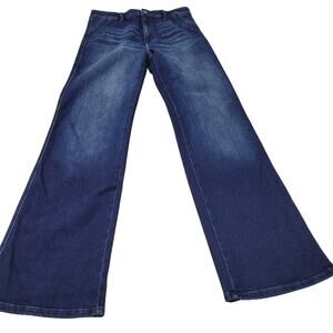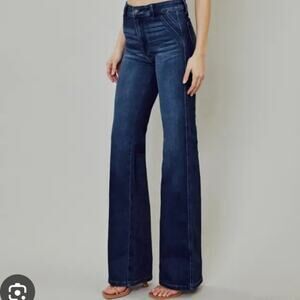 Rock a retro-chic look with these Kancan Misty jeans! Featuring a flattering high rise and trendy wide leg flare, these dark wash jeans are perfect for adding a touch of vintage flair to your wardrobe.