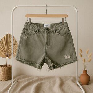 Kancan Olive Green Cutoff Raw Hem Denim Shorts Size 9/28