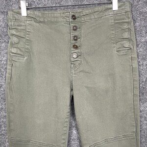 Kancan Pants Womens 31 Olive Green Moto Button Fly Snap Pocket Zipper Ankle High Rise. Good pre-owned condition. Mark on back of right leg. See pictures for details. See photos for measurements. Ships quickly from smoke-free home.