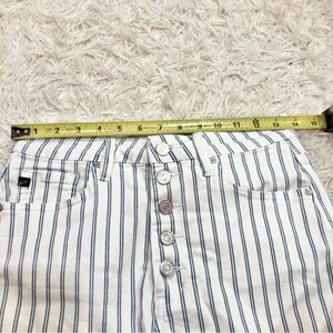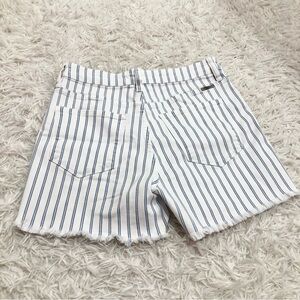 Kancan Railroad Striped high waisted button fly raw hem Shorts blue white large