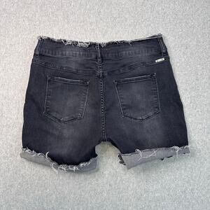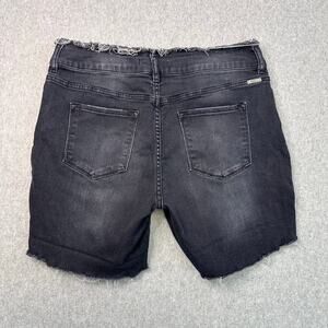 Kancan Shorts Black Women Plus Sz 18 Stonewashed Denim High Rise Raw Frayed Hem