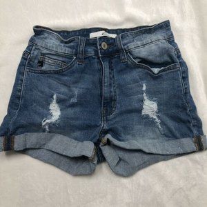Kancan Shorts Womens 3 /25 Light Jean Denim Distressed Destroyed High Rise