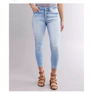 Kancan Signature Jeans Kurvy Mid-rise Ankle Skinny Size 27 Distressed Light Wash
