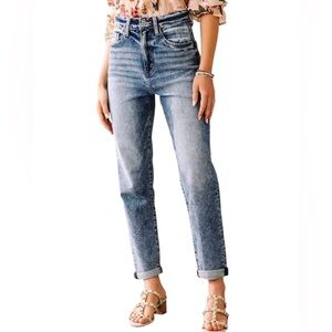 These are Kancan Signature High Rise Baggy fit Jeans in size 27. They have an acid wash finish. They are high rise, baggy and tapered. They have a very retro feel.