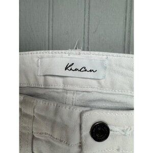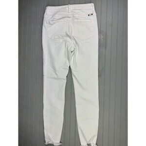 Kancan Size 7 27 Womens White Jeans High Rise Button Fly Raw Hem Skinny Stretch