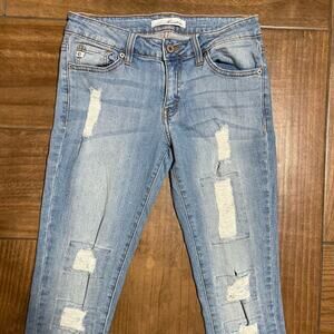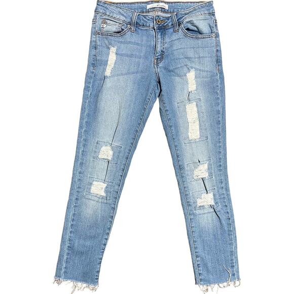 Kancan Skinny Jeans Distressed Cropped Light Wash Women's Sz 26