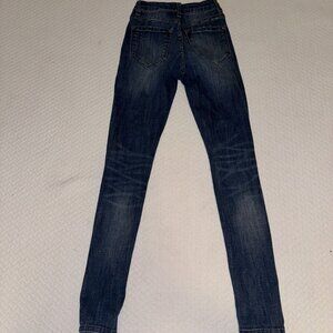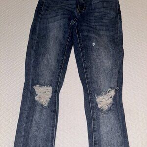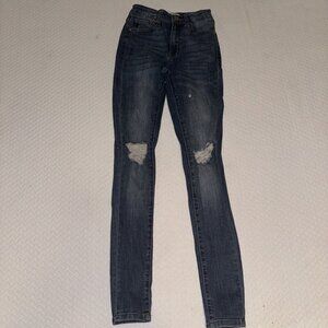 Kancan Skinny Jeans Womens 0/23 Mid Rise Dark Wash Distressed Stretchy Denim