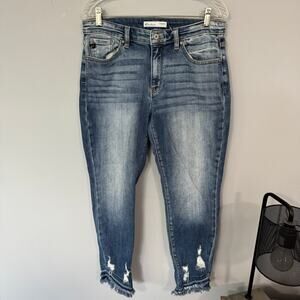 Kancan Skinny Mid Rise Frayed Ripped Jeans Women's Size 30 Ankle Length Spandex