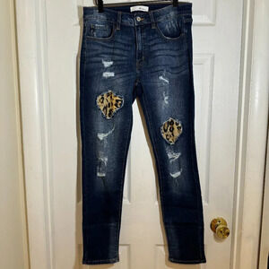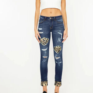 Kancan Vienna Mid-Rise Super Skinny Leopard Patch Jeans