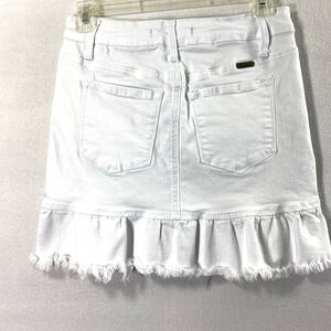 Kancan White Denim Skirt Womens Small Raw Hem Flounce Ruffle Pockets Festival