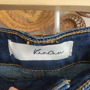 Dark wash Wide Leg Denim Trousers by KanCan. These have been hemmed but kept the original hem so they can be un-stitched and made longer.