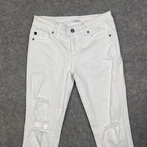 Kancan Womens 5/26 White Distressed Twisted Ankle Skinny Denim Jeans KC8086WT