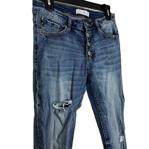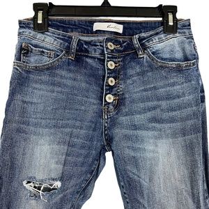 Kancan Women's Clarie Mid Rise Boyfriend Jeans Distressed Button Fly Stretch 28