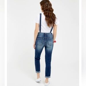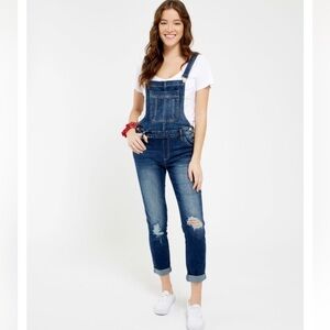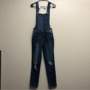 Kancan Women’s Dark Wash Distressed Skinny Jean Overalls Size Small