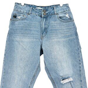 Kancan Women's Distressed High Rise Ankle Leg Blue Denim Jeans Size 7/27
