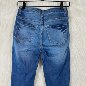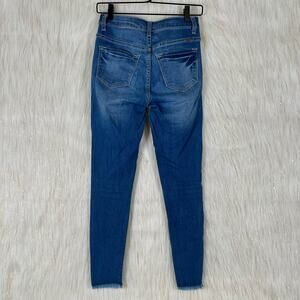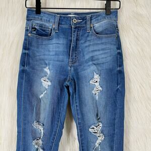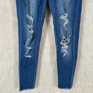 Kancan Womens Distressed Skinny Jeans Raw Hem Medium Wash Mid Rise 25