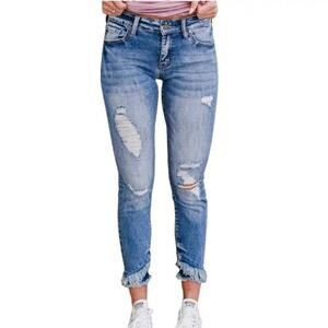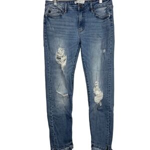 Kancan Women's Double Raw Hem Fringe Distressed Jeans Medium Wash Size 11/29