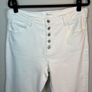Kancan Women's Flare Stretch Jeans White Denim High Rise Frayed Button Fly 15/31