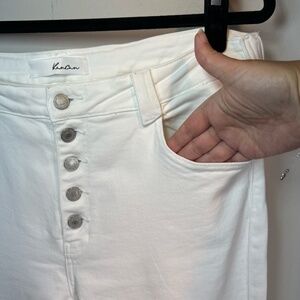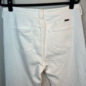 Kancan Stretch Flare Jeans White Denim Exposed Button Up 5 Pockets Frayed Hem Belt Loops #KC7410WT Vacation Coastal