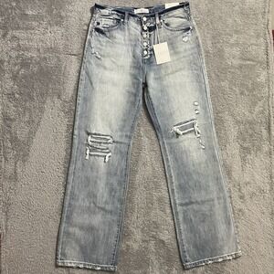 Kancan Womens Jeans Size 11/29 90s Flare Distressed High Rise Button Fly Denim
