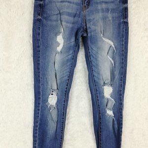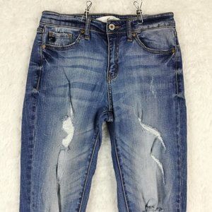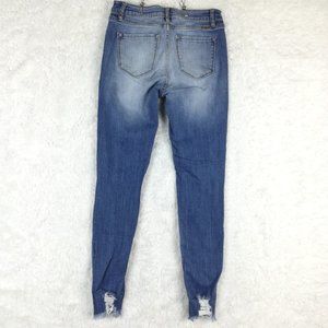 Kancan Womens Jeans Skinny Blue Stretch Ripped Medium Wash Mid Rise Raw Hem 27