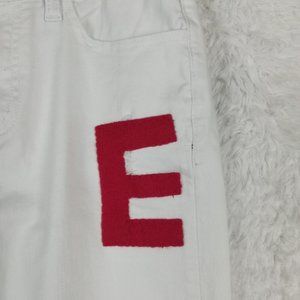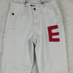 Kancan Womens Jeans Skinny Denim White Ripped Patched "E" Red Mid Rise 26
