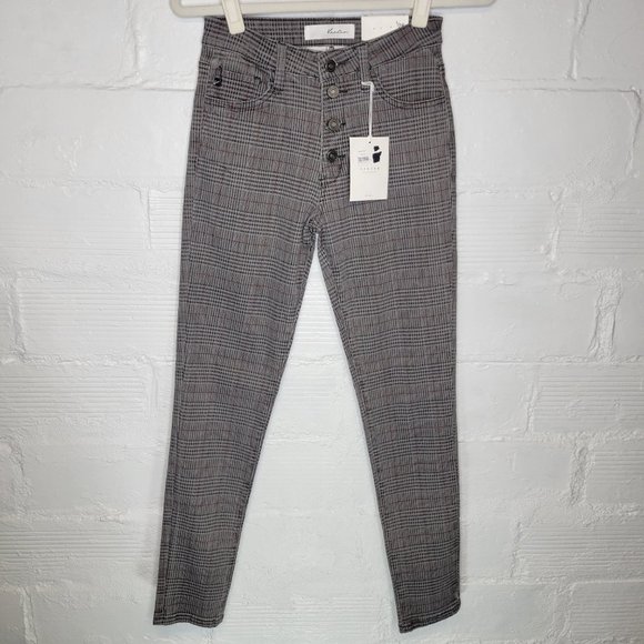 Kancan Women's Junior's Size 5 Jeans Gray Plaid Button Fly