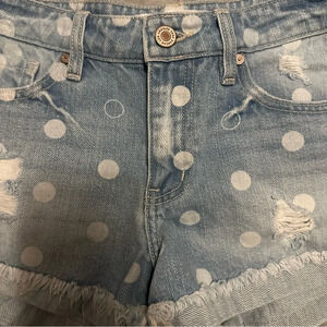 Kancan Women's Mid-Rise Polka Dot Frayed Hem denim Short size XS