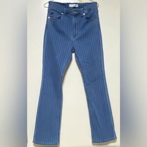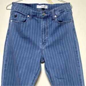 Kancan pinstripe jeans, size 9/28, featuring a high-rise waist, flattering fit, and signature stretch denim. Known for their blend of comfort and trendy style, these jeans can easily be dressed up or down.