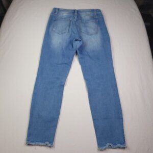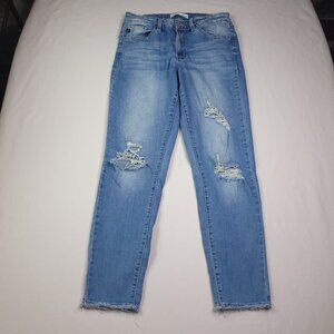Kancan Womens Skinny Jeans 9 Distressed Medium Wash Low Rise Raw Hems Stretch