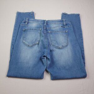 Kancan Skinny Jeans 9 Distressed Medium Wash Low Rise Raw Hems Stretch Womens
