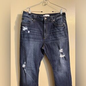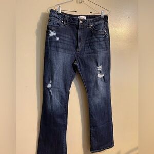 Kancan Womens Stretch High Rise Flare Distressed Blue Jeans Size 30