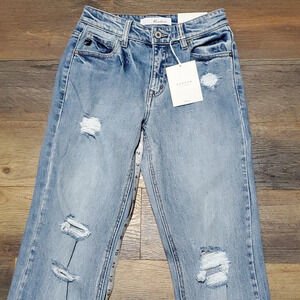 new with tags no issues distressed light wash straight leg jegs size 1/24 by kancan
