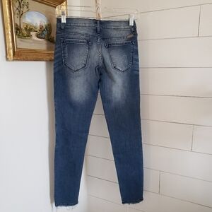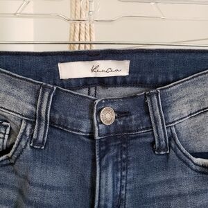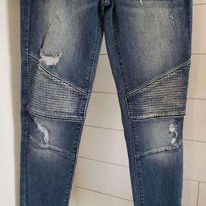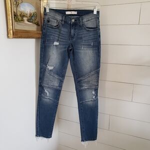 Kancan distressed skinny moto jeans size 1/24 Medium wash moto style Rise 7", inseam 26.5"