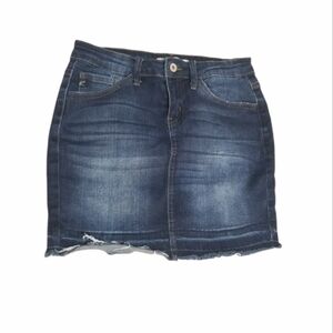 Kancan, mini skirt frayed hem denim stretch jeans, size 3/25