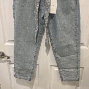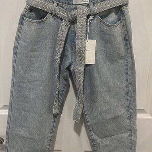 Kancan tapered light wash denim jeans with sparkle belt NWT