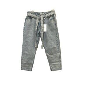 Kancan tapered light wash denim jeans with sparkle belt NWT